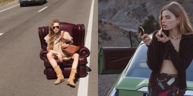 Đặc biệt, sự phá cách của mùa này nằm ở chất liệu denim. Sắc xanh xám phai cùng phiên bản mới của họa tiết monogram denim nâu được bắt gặp trong những chiếc quần và áo khoác dáng rộng, cùng đầm không tay thắt đai với túi hộp ngoại cỡ. Bên cạnh đó, các mẫu áo blouse, chân váy, sơ mi, T-shirt và áo parka được tìm thấy với chi tiết chun co giãn nổi bật trong các gam màu cam quýt, hồng rosé, màu cát, nâu đỏ sienna và trắng. Bộ sưu tập dường như được khoác lên tấm áo năng động với các chất liệu poplin cotton, taffeta in họa tiết bay bổng và lụa siêu nhẹ.